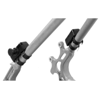 Pattes de cadre non oeilletées : compatible, soit avec l'axe traversant oeilleté Ortlieb Thru Axle M6 Connector, soit avec les adapteurs pour haubans Ortlieb Seat Stay