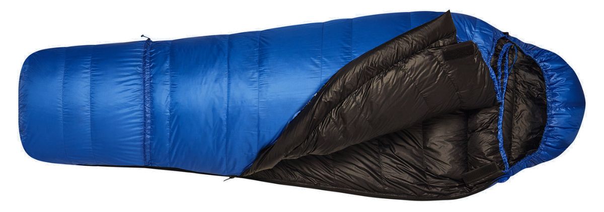 Equipement : protection isolante du zip, cordon de réglage de la capuche, poche interne, boucles aux pieds du sac pour le suspendre, pas de collerette.