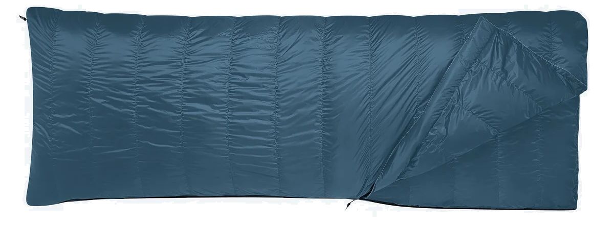 Construction : en H (compartiments rectangulaires), les compartiments ne sont pas séparés entre le dessus et le dessous du sac, ce qui permet soit de répartir équitablement le duvet (utilisation en couette), soit de mettre un peu plus de duvet sur le dessus (utilisation en sac de couchage).